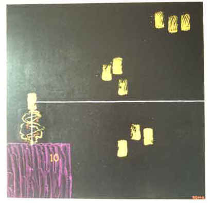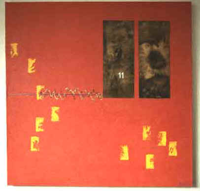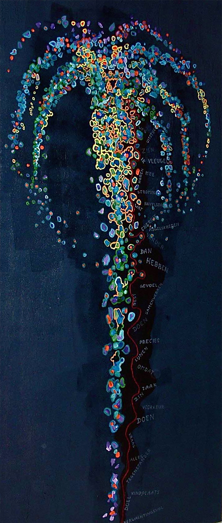 | tweeluik met nr. 11, Het ontvangen | tweeluik met nr. 10, Het zenden | Origineel met houten rand | vierluik met dadadialogue, léveil en shiva; co-productie met Pascale Lefebvre | vierluik met de majesteit, léveil en shiva; co-productie met Pascale Lefebvre | Origineel met houten rand | origineel met houten rand | Origineel met houten rand |